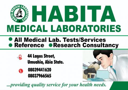 We are Habita Medical Laboratories, a leading healthcare facility located at No 44 Lagos Street, Umuahia, the Abia State capital, NIgeria.