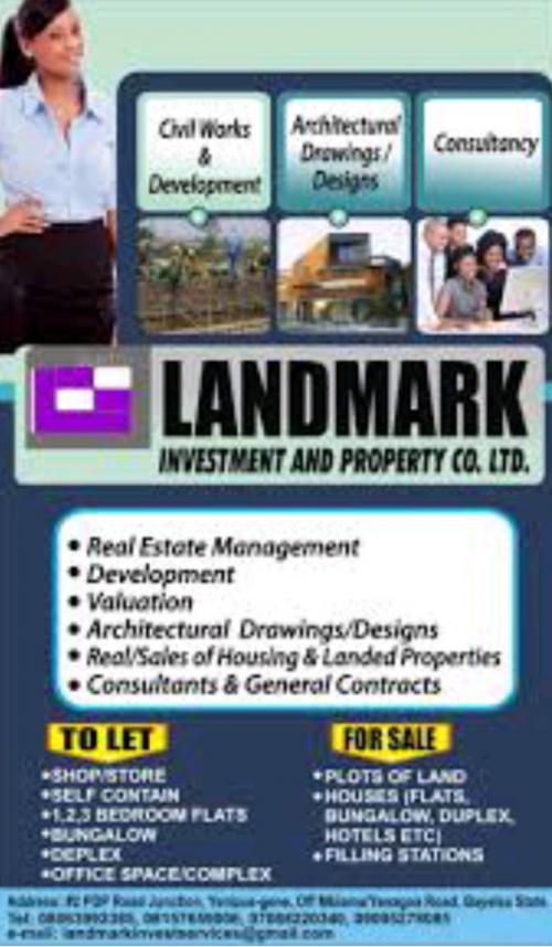Landmark Investment and Property Company Limited is a versatile trusted and reliable real estate player which is committed to working with any clients to provide very genuine real estate solutions. Our services are of global standard and sure to provide genuine solutions. We are, efficient, cost effective and prompt. We are client centric and eager to impress and satisfy our clients.