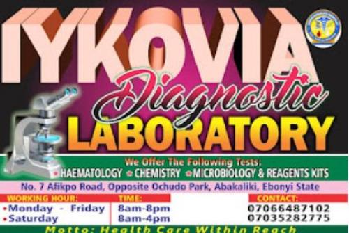 Iykovia Diagnostics Laboratory is a state of the art medical laboratory providing excellent health checks for the purpose of helping patients have adequate information about their health conditions.